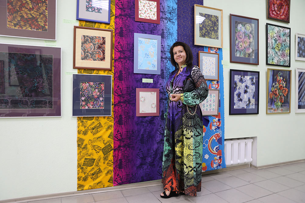 В экспозиции можно увидеть 80 работ в разных техниках: декоративно-прикладное искусство, графика, живопись. Большую часть составляют кроки, рисунки для тканей, ситцы, сатины Барнаульского хлопчатобумажного комбината, который не работает с 2000 года. Есть здесь батики, свободная роспись текстиля, расписанная одежда в этих техниках.