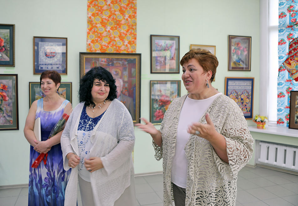 На выставке представлены работы художников текстиля Г.А. Белышева, Т.В. Дедовой, Н.И. Драничниковой, И.В. Щетининой.